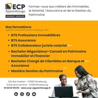 L’ECP Apprentissage est un Centre de Formation d’Apprentis situé dans le quartierde l’Esplanade à Strasbourg. Il forme ses étudiants aux métiers de l’Immobilier, duNotariat, de l’Assurance et de la Gestion du Patrimoine.