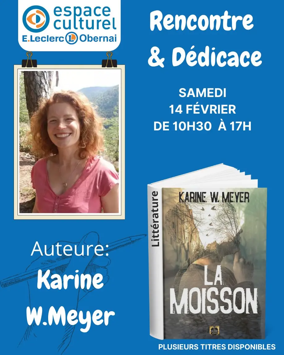Le samedi 14 février dès 10h30 venez rencontrer l'auteure Karine W.Meyer qui se fera un plaisir de vous parler de son nouveau roman LA MOISSON.