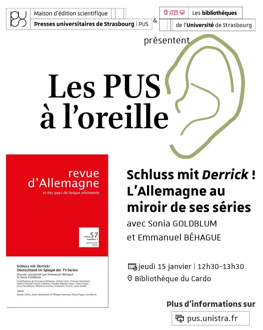 Une revue, une bibliothèque, une conférence, c'est les PUS à l'oreille. Venez écouter et échanger le temps d'une pause méridienne avec les chercheur(e)s qui font les revues de l'Université de Strasbourg !
