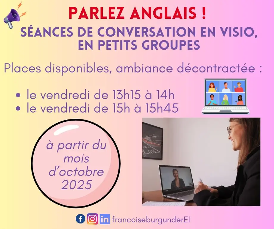 Ce ne sont pas des cours, mais de la pratique (légèrement) guidée. Françoise fournit des supports pour ouvrir la conversation, répartir la parole parmi les participants, et leur donner des astuces pour aller plus loin.