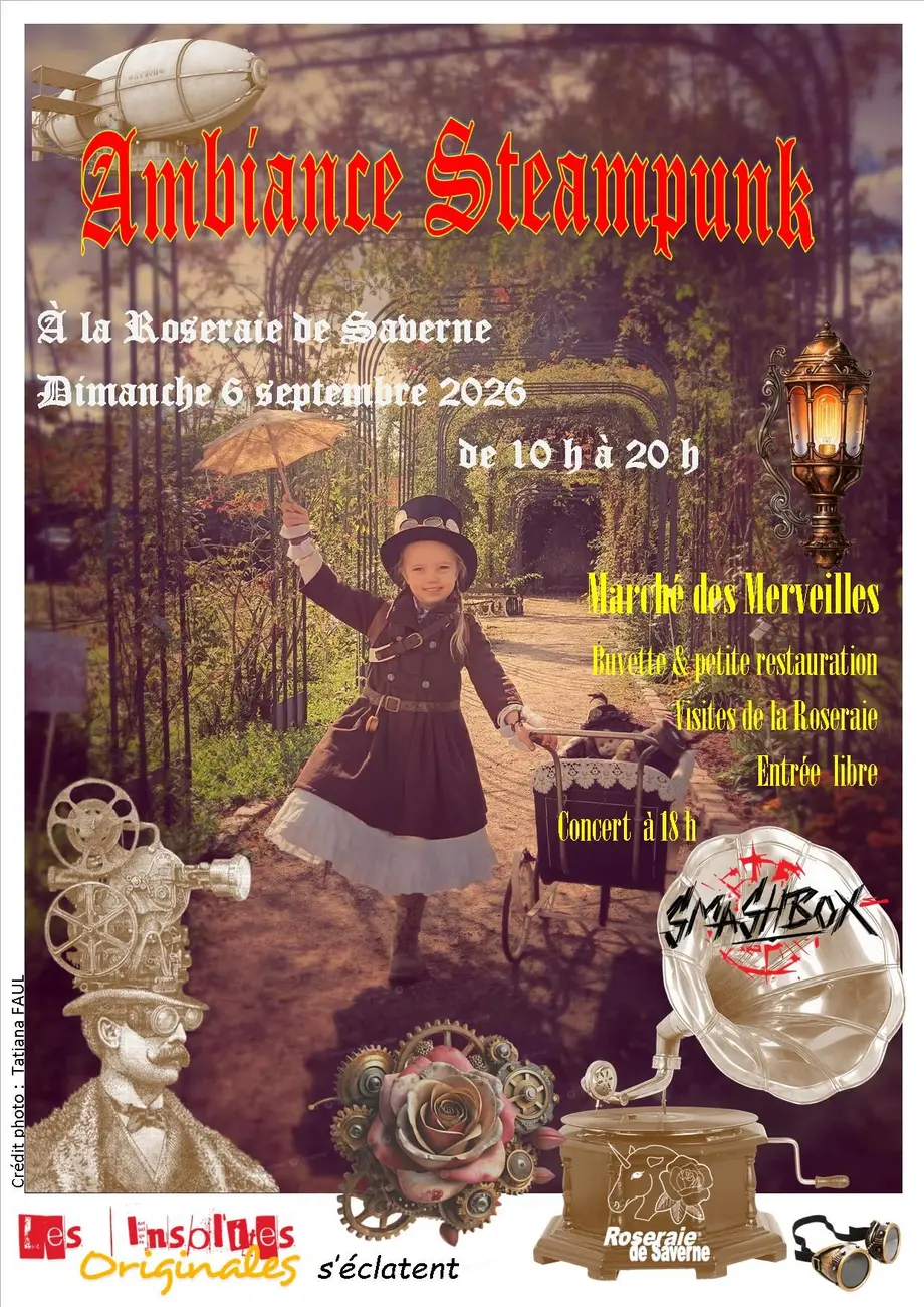 Des personnages sortis d'un passé imaginaire vont déambuler dans le décor romantique de la Roseraie offrant au public leur monde déjanté dans une ambiance musicale rétro et/ou rock ainsi qu'un Marché des Merveilles proposé par quelques artisans et artistes, du maquillage, des accessoires pour vous costumer ou des objets de déco décalée ...