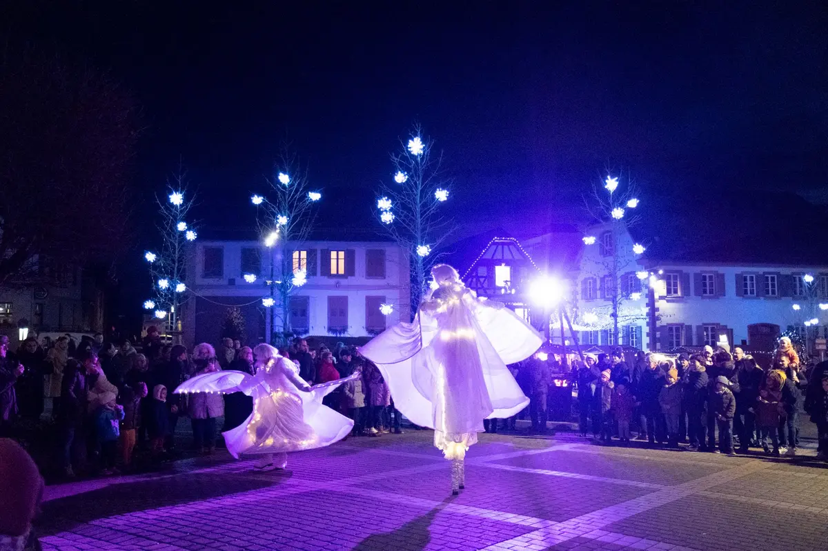 Grande nouveauté 2025 ! Dès 17h, un spectaculaire mapping vidéo illuminera l’église Saints Pierre et Paul avec une mise en scène des personnages emblématiques de Noël en Alsace.