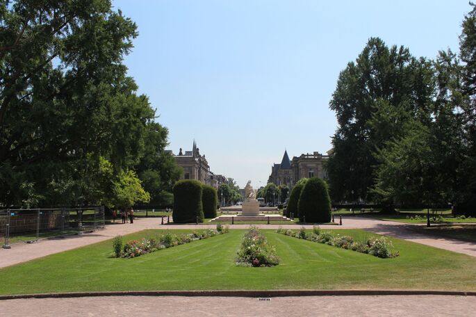 Encerclée par de nombreuses institutions de la ville de Strasbourg, la place de la République reste un espace vert agréable que beaucoup apprécient lors des douces journées de printemps et d'été.