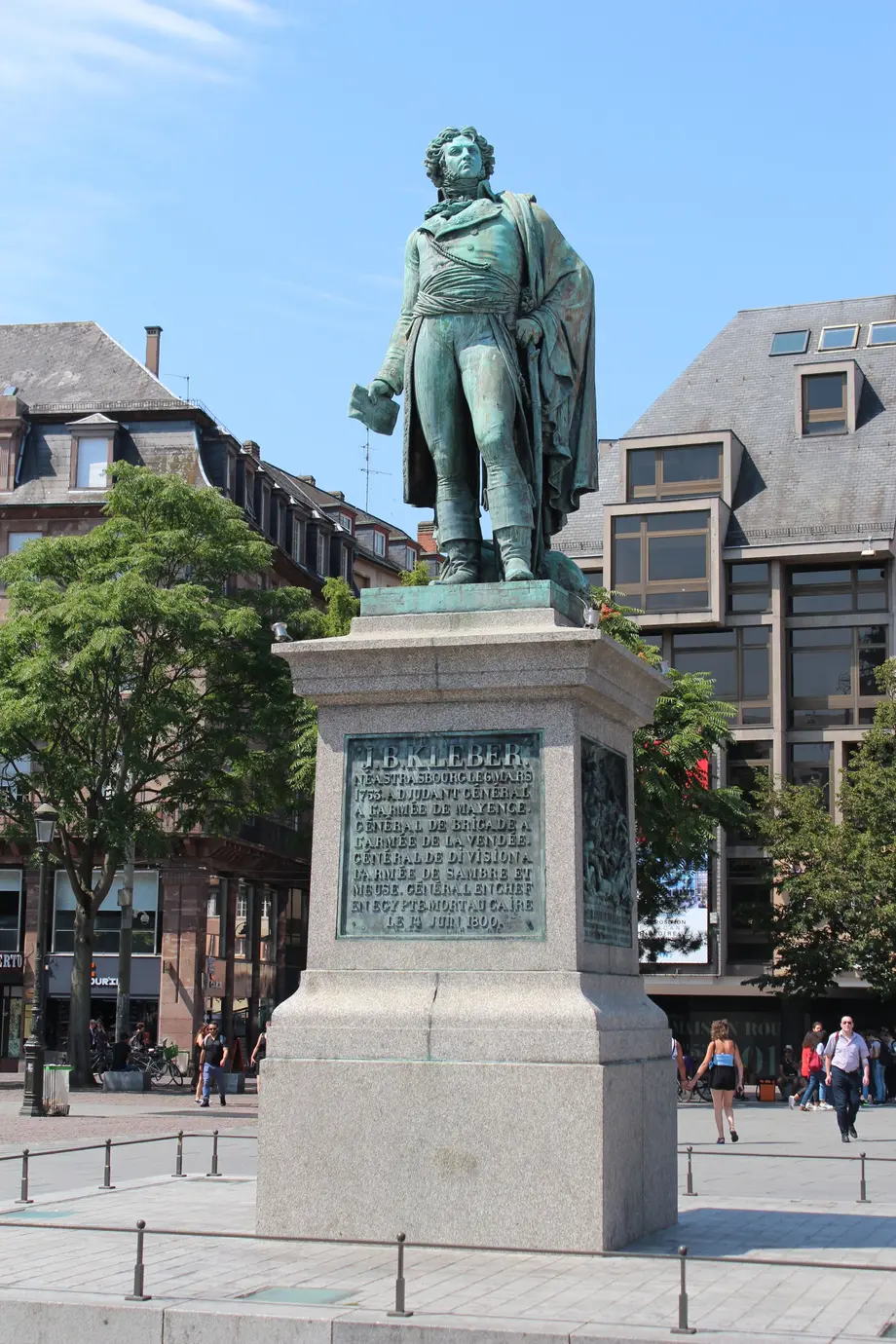 La place tient son nom du général strasbourgeois Jean-Baptiste Kléber, qui s'est illustré lors des guerres de la Révolution française. Une statue à son effigie trône fièrement au centre de la place, avec un caveau contenant ses cendres en-dessous.