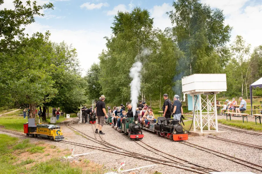 Après avoir fait le plein d’eau et de charbon, les petites locomotives vous feront gravir la colline avec panaches et sifflets jusqu’à la gare d’Avontuur.