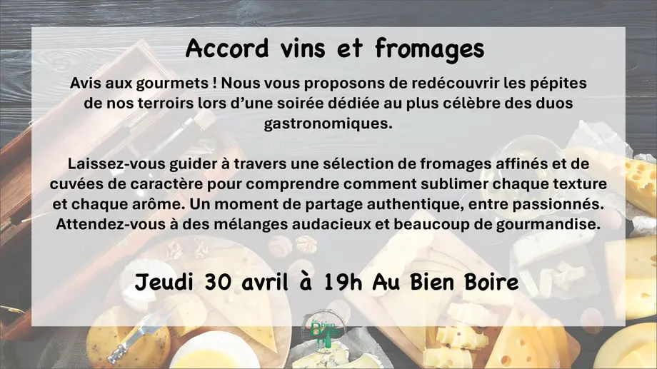 Plus qu'une simple dégustation, cette soirée "Accord vins et fromages" est une invitation à l'échange et à la curiosité. Nous avons sélectionné pour vous des pépites artisanales et des cuvées de caractère pour explorer, ensemble, comment sublimer chaque texture et chaque arôme.