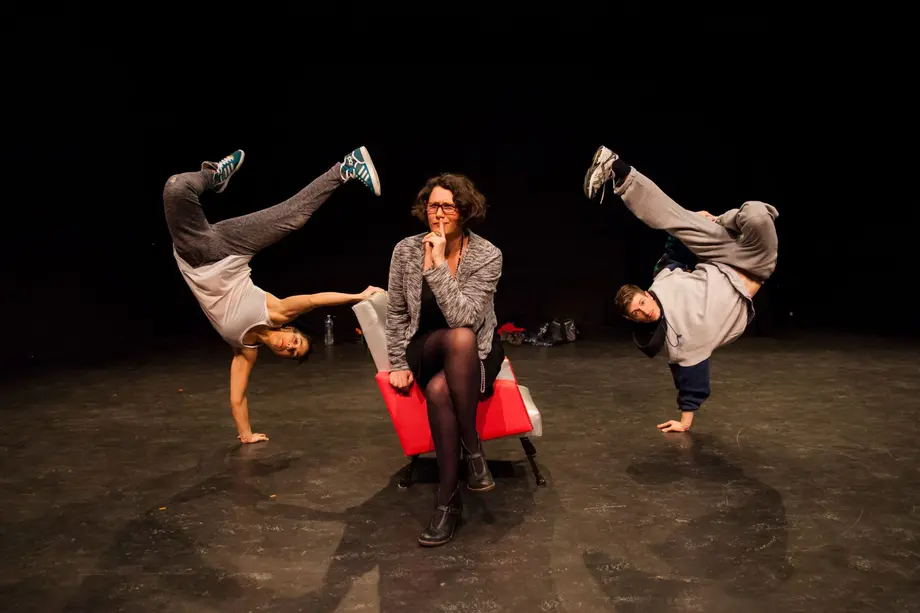 Ingrid Chasseur, conférencière un peu pimbêche aux faux airs de bourgeoise à lunettes, s’appuie sur la présence fortuite de 2 danseurs pour dévoiler l’origine et l’évolution de cette culture : la musique, le graff et surtout la danse.