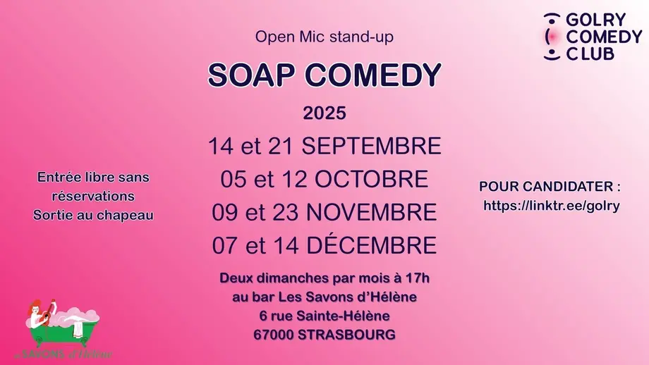 Le Golry Comedy Club vous invite à égayer votre dimanche avec son open mic de stand-up, le Soap Comedy !