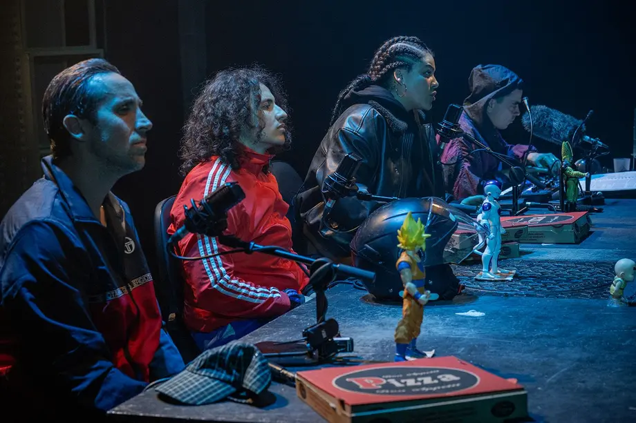 Dans ce théâtre musical sous forme de radio live hip hop, Julien Villa adapte au plateau son roman « Des Dragons dans les halls », 3e volet de sa trilogie Des Don Quichotte(s). S’inspirant de ses souvenirs d’enfance, l’acteur et metteur en scène imagine un récit épique où la vie des bande de jeunes, la découverte du rap, l’humour et les mythologies urbaines inspirées du manga Dragon Ball rythment un quotidien brutal et « ré-enchantent d’intrigues un monde désenchanté ».