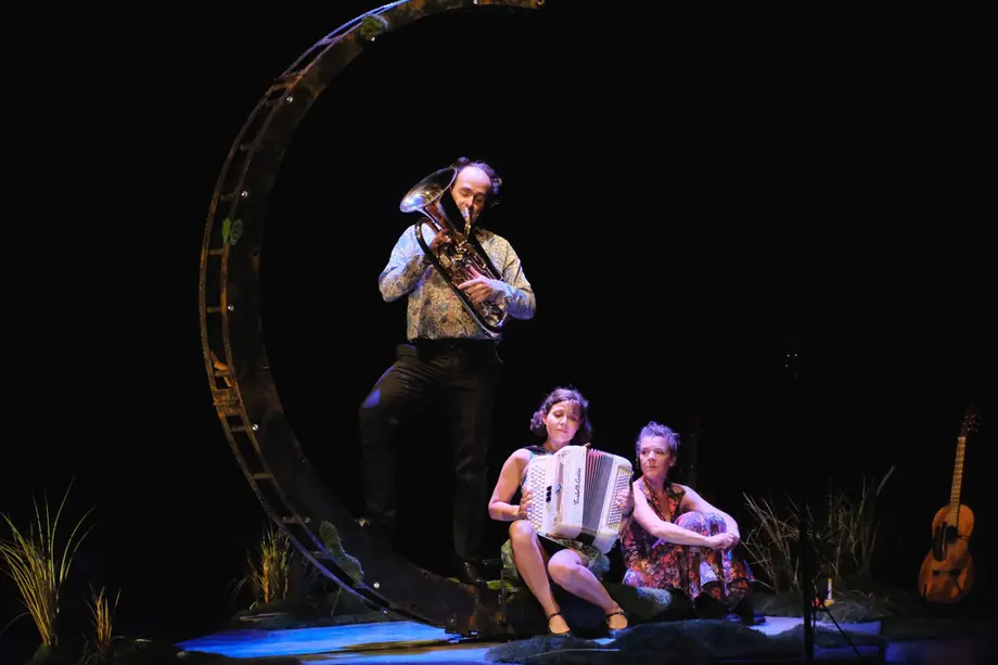 L’humeur est solaire et les influences musicales variées (folk sixties, rap, valse, symphonie façon cartoon, slam, chant lyrique…), sont servies par un riche instrumentarium. Guitares, clavier, accordéon, cloches, tuba, shruttibox et percussions, sont finement dosés laissant ainsi la part belle aux polyphonies. Ces trois artistes aux multiples talents -car ils sont tout autant clowns, chanteurs et multi-instrumentistes – prennent grand plaisir à donner vie à ce bestiaire musical, infusées de leurs sensibilités et questionnements actuels.