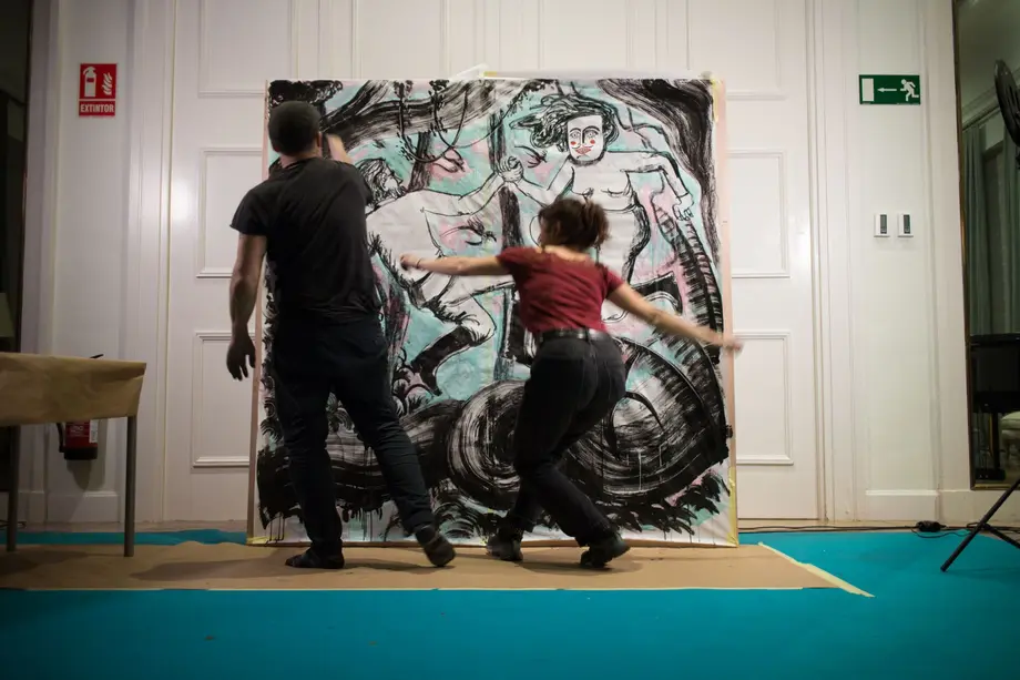 Le duo " Mangoosta", composé par Lucia Malerba et Niccolò Manzolini, a développé une méthode d’improvisation à quatre mains pour réaliser des dessins grand format au cours d’une performance dans laquelle le duo crée un dessin d’environ 2 mètres sur 2, avec une technique mixte en direct sur scène, en dialoguant avec le piano du musicien Michele Pedrazzi, comme dans une danse rituelle.