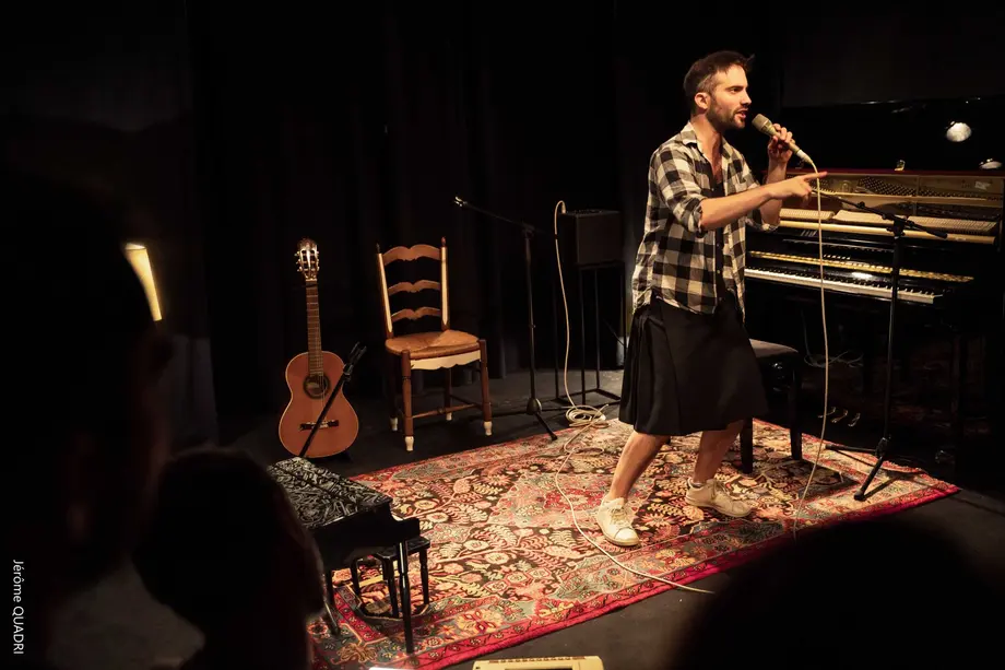 Faisant de la scène un petit salon de musique avec son tapis, ses pianos et sa guitare, Louis Caratini se penche sur le mystère de l'inspiration, fil rouge de ce tour de chant instructif et participatif. Citant tubes célèbres, plagiats et genèses de certaines chansons, il fait entendre la richesse des écritures des chansons francophones.