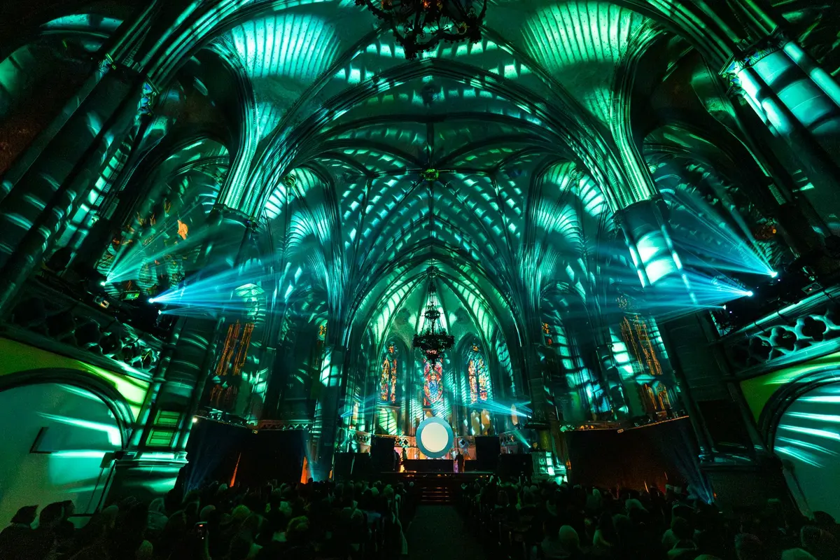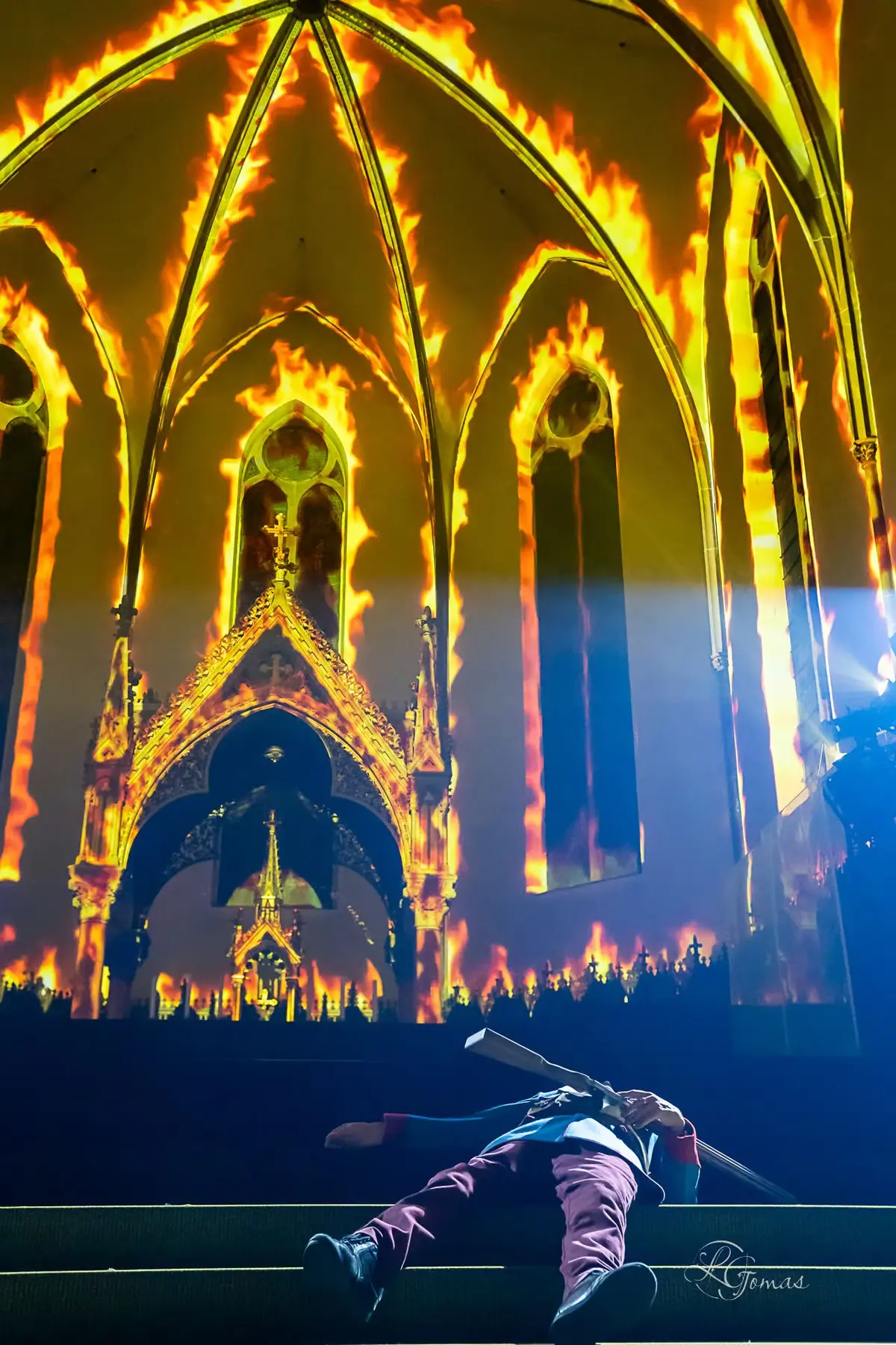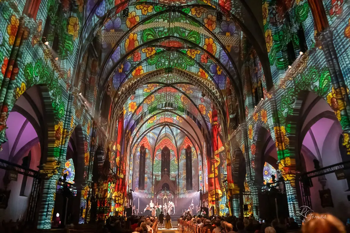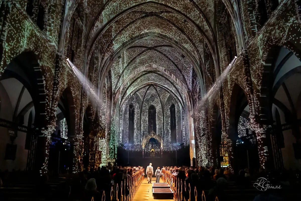 Grâce à des projections vidéo laser 3D à 360°, la mise en lumière couvre l’intégralité de l’édifice. Les murs, les voûtes et l’architecture monumentale de l’église Saint-Paul deviennent le décor vivant du récit, plongeant les spectateurs dans une expérience immersive à la fois spectaculaire et intimiste.
