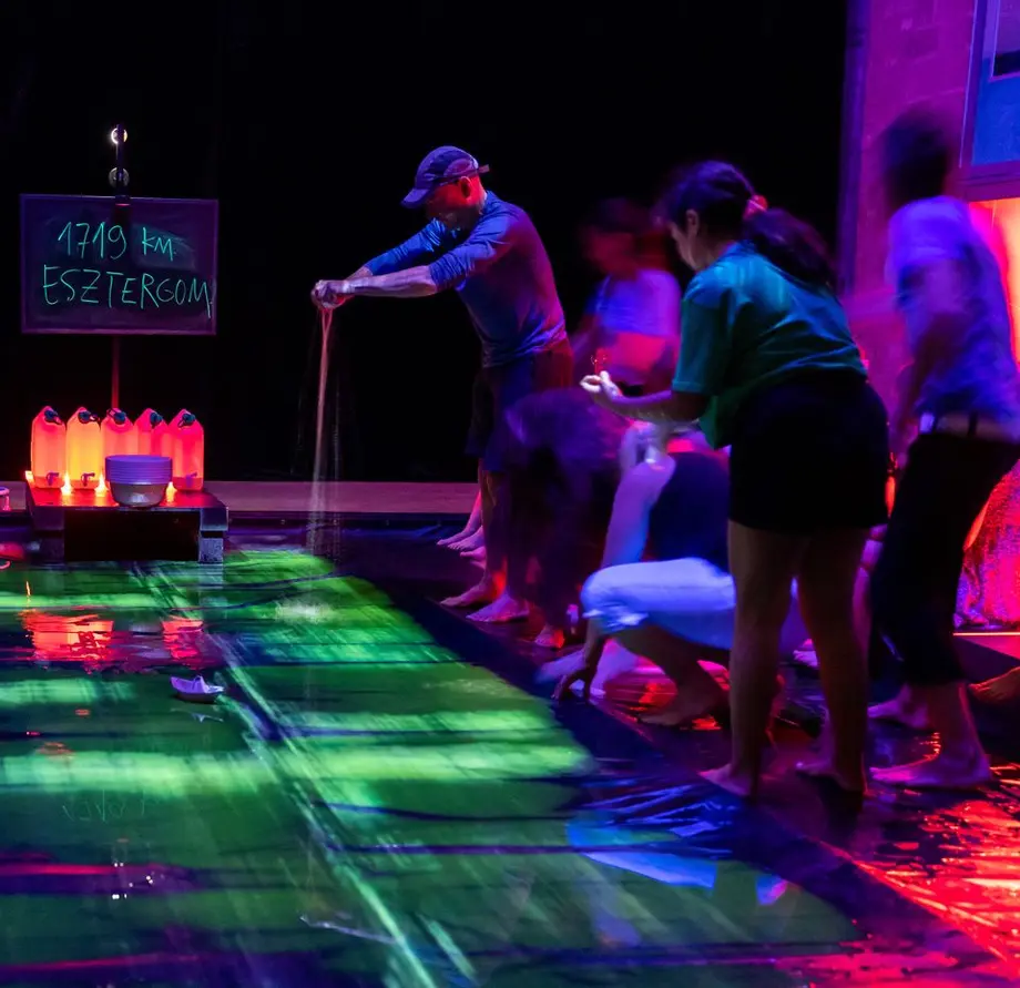 Comédiens, musiciens, vidéastes, régisseurs, tout l’équipage artistique nous embarque pour un fascinant voyage sensuel et lyrique dans l’imaginaire des cultures danubiennes. Entre spectacle et performance artistique participative, l’expérience procède par méandres et embouchures, en suivant la géographie, les images, les sons, les couleurs et les sensations d’un fleuve modelé par ses spectateurs, petits et grands, les pieds dans l’eau et des étoiles plein les mirettes.
