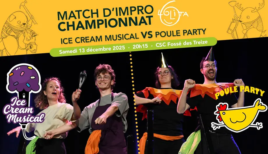 Match d'improvisation CHAMPIONNAT : Poule Party vs Ice cream musical