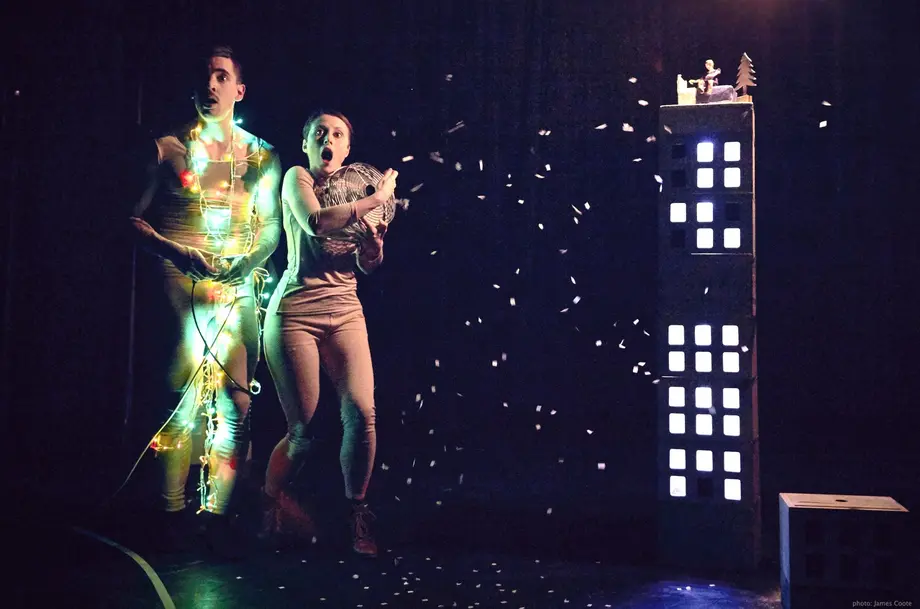 Six interprètes donnent vie à ces créatures. A la fois mimes, marionnettistes, équilibristes ou danseur·euses, tous·tes nous emmènent dans des histoires aussi drôles que grinçantes, entre réel et fantastique. Une branche d’arbre pousse dans l’oreille d’un homme qui vient de perdre sa femme. Un poisson surgit de l’eau et dévore la tête d’un pêcheur solitaire. Un père voit ses jambes se dérober sous lui depuis que sa fille s’est enfuie. Sans un mot, et avec des gestes subtils, les artistes parviennent à transformer ces drames et chagrins en poésies. Nous oscillons entre rire et émotion face à leurs métaphores. Une fable qui raconte l’absurde et le fantastique de nos existences et notre entêtement à vouloir être heureux·euses.