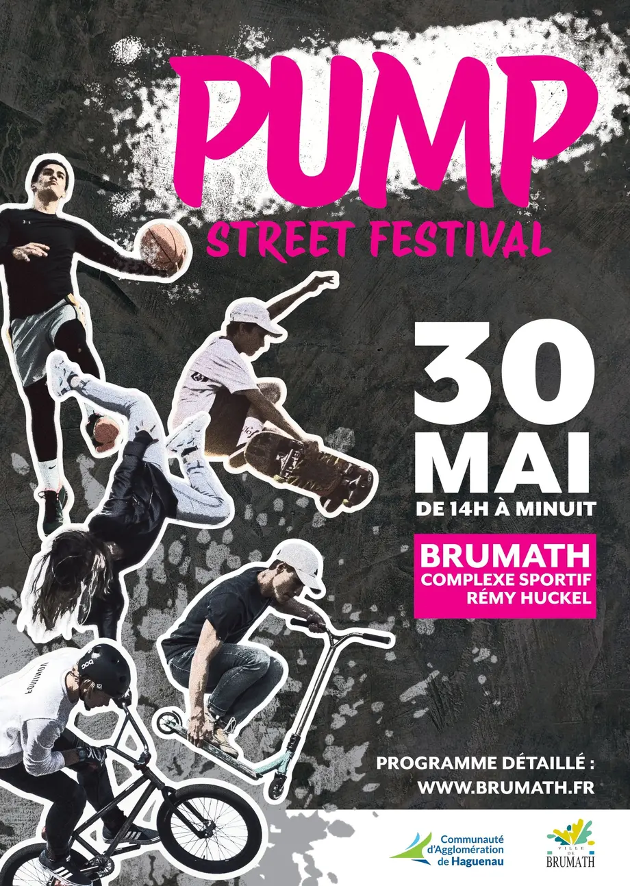 Événement festif dédié aux cultures urbaines et aux sports de glisse, le Pump Street Festival combine activités sportives, performances artistiques et ambiance musicale. Ouvert à tous, vous y retrouverez des initiations (skate, trottinette, danse, roller, monocycle), des démonstrations (BMX, monocycle trial), des shows et battles de danse, ainsi qu’une exposition participative de street-art. Un tournoi de basket 3×3 est également organisé sur inscription.