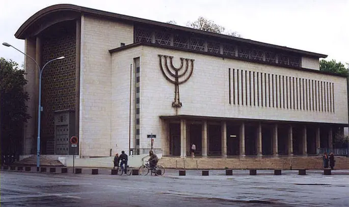 Après que la Deuxième Guerre Mondiale ait fait disparaître l'ancienne synagogue de Strasbourg, les juifs ayant réchappé à la répression nazie reformèrent la communauté juive de Strasbourg, se réunissant dans le Palais des Fêtes jusqu'en 1948.