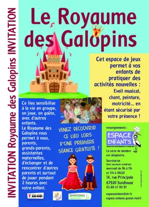 Dans l'esprit de la maison verte de Françoise Dolto, Le Royaume des galopins est un lieu d'accueil pour tous les enfants de 0 à 3 ans, accompagnés par un ou plusieurs adultes (parents, grands-parents, assistante maternelle…). Les futurs parents sont aussi les bienvenus.