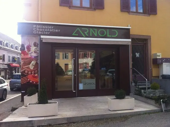 Les clients trouveront au sein de la boutique un large choix de pâtisseries qui varient au fil des saisons. Arnold c'est aussi du chocolat parmi lesquels les célèbres "Pavés de Thann". La pâtisserie propose également de nombreux parfums de macarons. Elle confectionne de la glace maison.