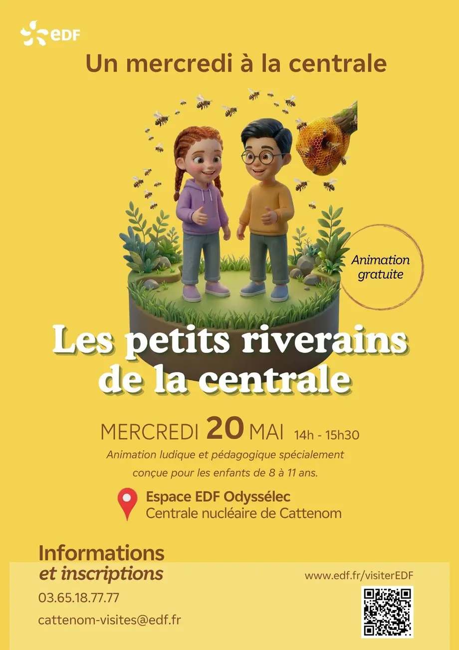 Mercredi 20 mai 2026, la centrale nucléaire de Cattenom propose une animation ludique et pédagogique intitulée « Les petits riverains de la centrale », destinée aux enfants de 8 à 11 ans.