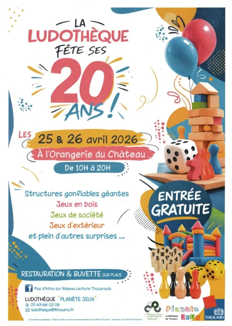 Journée jeux de sociétéLe 22/04/2026Saint-VarentToute la journée, partagez des jeux de société en famille, entre amis, autour d'une sélection proposée par la ludothèque.
