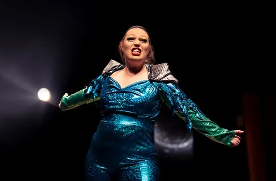 Une loge d’artiste sur le plateau : une comédienne en retard et agacée. Qu’à cela ne tienne : elle va devoir se préparer devant le public et le faire patienter jusqu’au « vrai » spectacle. C’est l’occasion pour elle de questionner l’image qu’elle renvoie, entre ce qu’elle choisit de montrer et ce qu’elle est vraiment, et de triturer le rapport au corps sous toutes ses facettes : brut, pataud, sublimé, gracieux…