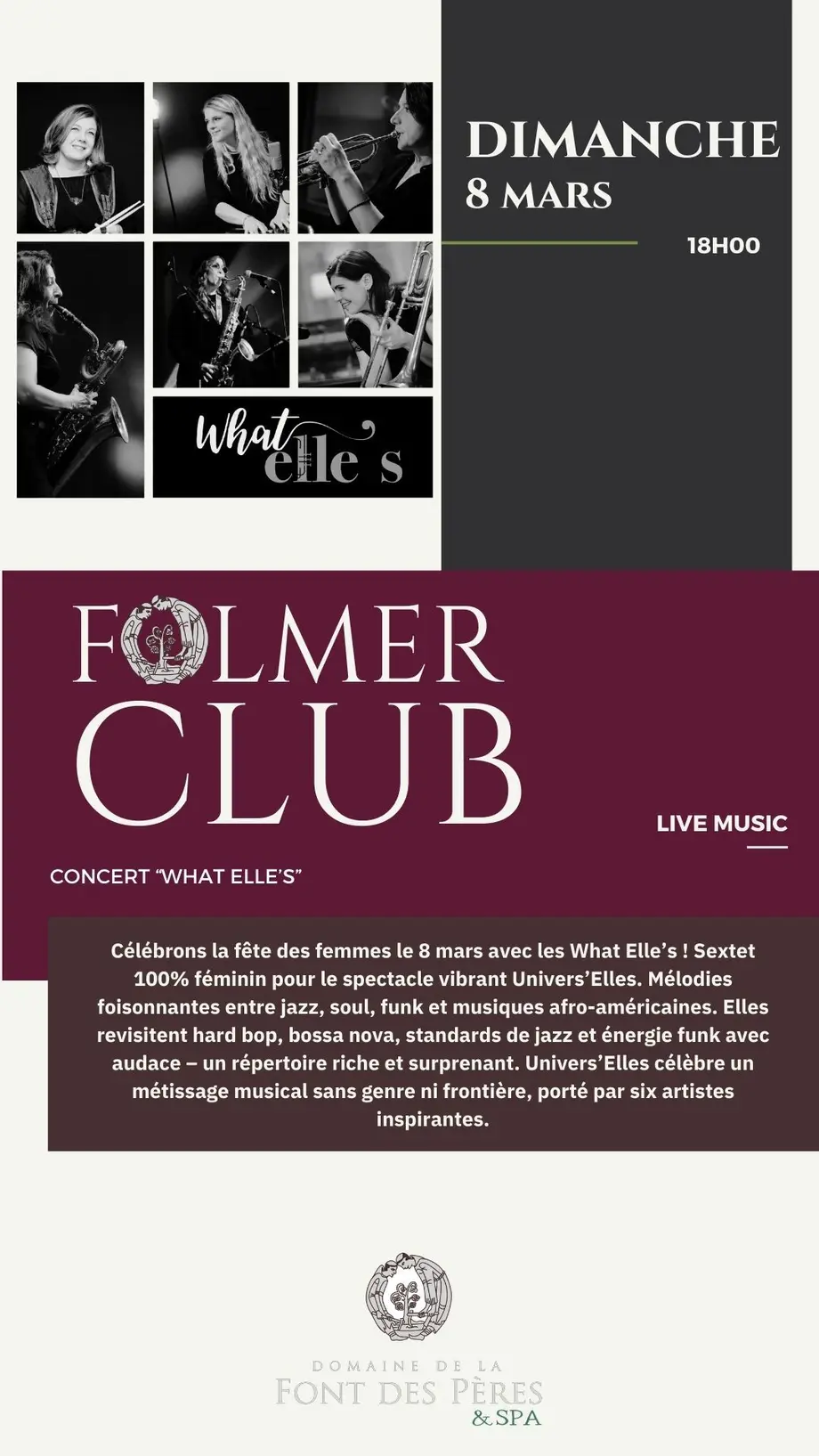 Ne manquez pas cette soirée unique où musique, féminité et gastronomie fusionnent en parfaite harmonie.