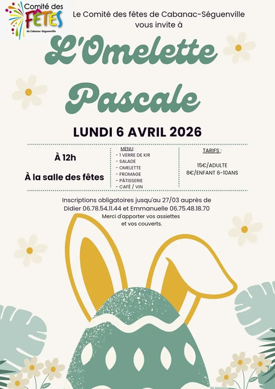 Lundi 6 avril à 12 h, rendez-vous à la salle des fêtes pour déguster une omelette généreuse dans une ambiance chaleureuse et festive.