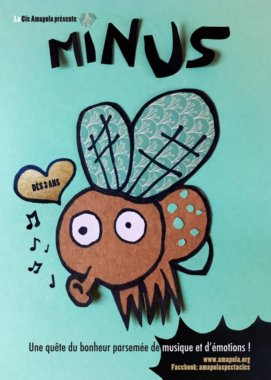 C’est quoi, le bonheur ? Et puis, c’est quoi, être heureux ? Comment trouver sa place ? Minus, une petite mouche malmenée par la vie, veut le rencontrer, ce bonheur dont tout le monde parle, et décide de partir à sa recherche. À travers son périple rocambolesque dans un univers pop-up, Minus va traverser toutes les émotions et apprendre à se connaître. Les pages se tournent et dévoilent de nouveaux paysages et personnages qui aideront Minus à trouver sa voie. Un conte-randonnée, rythmé par des chansons originales, accompagnées au ukulélé et au kazoo !
