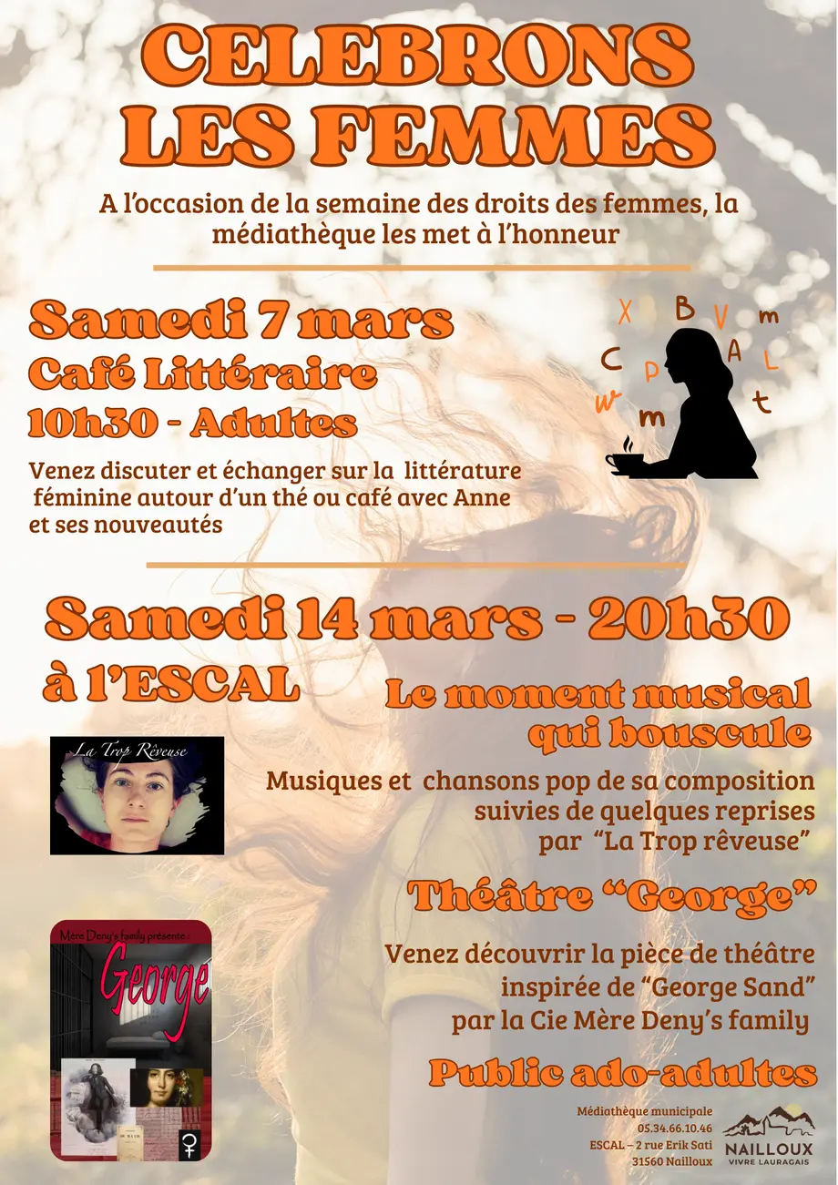 Elle sera suivie de la pièce de théâtre George par la Cie Mère Deny’s family : Mia Lefevre, journaliste littéraire, est emprisonnée après avoir tenté de tuer son mari, alors qu’elle écrivait un livre sur George Sand. En prison, elle doit affronter ses propres motivations pour espérer retrouver la liberté. Au moment où elle sombre dans le découragement, elle reçoit une aide inattendue : George Sand elle-même apparaît pour la soutenir, lui raconter sa propre vie et lui redonner la force d’affronter la réalité et de sortir de cette épreuve.
