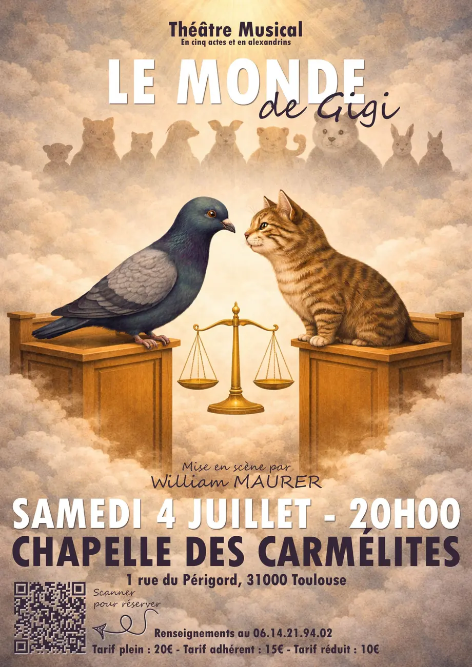 Le samedi 4 juillet 2026 à 20h00, la Chapelle des Carmélites à Toulouse accueille Le Monde de Gigi, un spectacle théâtral et musical écrit et mis en scène par William Maurer.