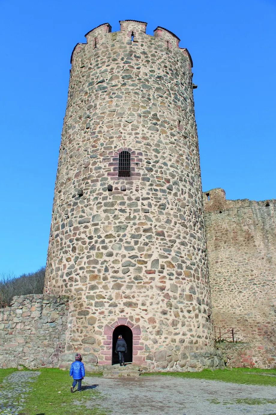 Reconnaissable à son énorme donjon cylindrique, le château du Schlossberg domine le typique village de Kaysersberg, sacré plus beau village de France en 2017. C’est un château atypique au rôle purement défensif. Il a été érigé peu avant 1227 pour contrôler la route commerciale d’Alsace jusqu’en Lorraine mais également pour se protéger des invasions ennemies. Le village de Kaysersberg fut également entouré par d’imposants remparts à cette époque. Le Schlossberg est impressionnant avec son donjon cylindrique massif de 22 mètres de hauteur (un des plus haut d’Alsace) et ses murs épais de plus de 4 mètres ! Facilement accessible depuis le village, vous pourrez, après avoir gravi une centaine de marche, découvrir un panorama à couper le souffle depuis le sommet du donjon.