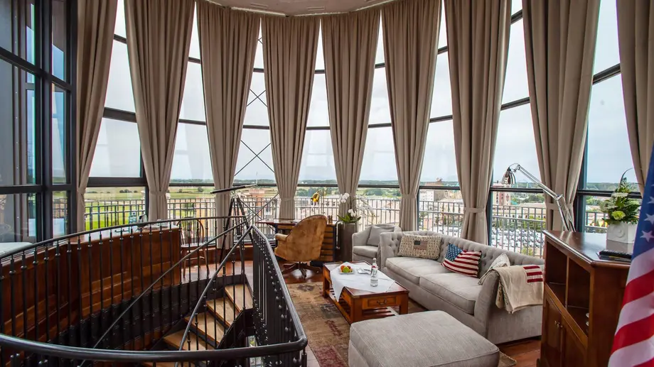 Le phare de Bell Rock, dans le quartier anglais est reconnaissable d'entre tous : il surplombe le quartier du haut de ses 35 mètres de hauteur et ses rayures rouge et blanche typique. Le phare fait partie de l'ensemble de l'hôtel Bell Rock 4 étoiles, et renferme à son sommet une suite exceptionnelle ! La suite J.F Kennedy, est un duplex de 110 m2 offrant une vue 360° sur tout le parc ! Le salon aux formes arrondies est décoré dans un style "US" rendant hommage à l'homme d'état américain. Jacuzzi extérieur, sauna, et vue imprenable, le roi du parc, c'est vous ! (enfin, au moins pour une nuit).