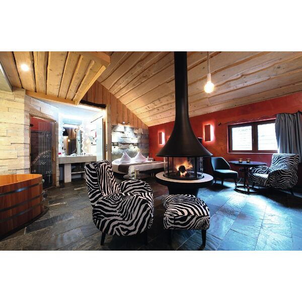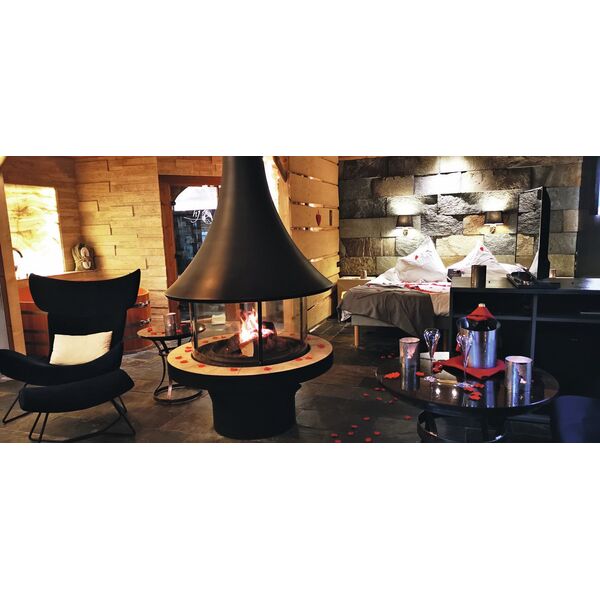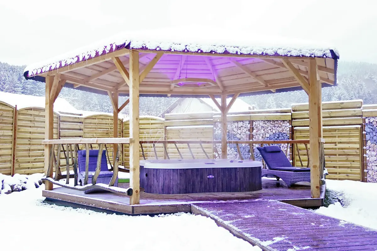 Chaque chalet dispose de sa propre cheminée à bois design et d'un jacuzzi privatif d'extérieur, chauffé à 38° toute l’année, y compris l'hiver. Certains chalets sont également équipés de sauna ou de hammam : vous allez chérir ces voluptueux moments de relaxation et de douce chaleur, au cœur de l'hiver vosgien.