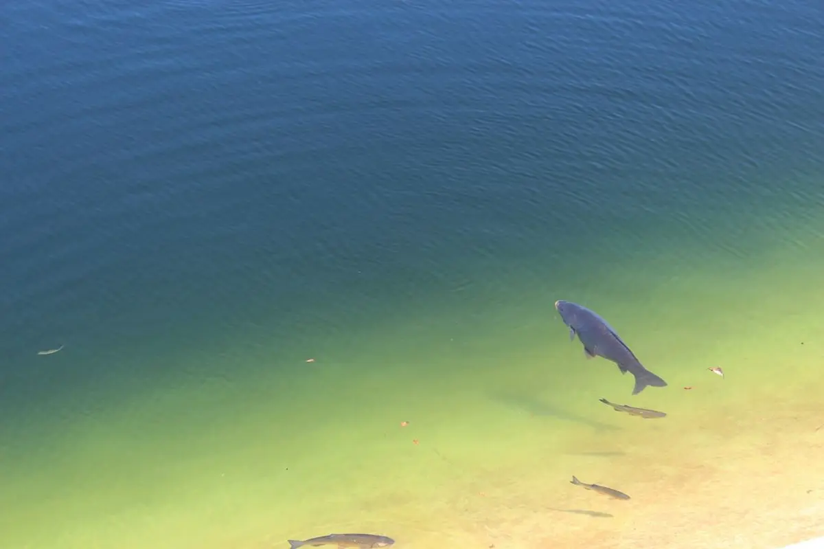 Régulièrement, au bord de l’eau, des pêcheurs tentent leur chance : truites, carpes, chevaines, brochets... de nombreuses espèces peuplent les profondeurs du Lac de Kruth. Nous avons observé un groupe de carpes grosses comme des catcheurs, pesant au bas mot une dizaine de kilos - notre photo l’atteste ! Ne soyez pas surpris si une grosse masse venait à vous frôler les orteils lors de votre baignade...