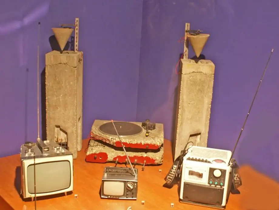 Encore quelques pas et nous voici en 1983, face à la chaîne hi-fi tout en béton du designer Ron Arad, tirée en série limitée et en parfait état de fonctionnement. Un aspect «chantier de démolition» : quand l’art contemporain rejoint la technologie...