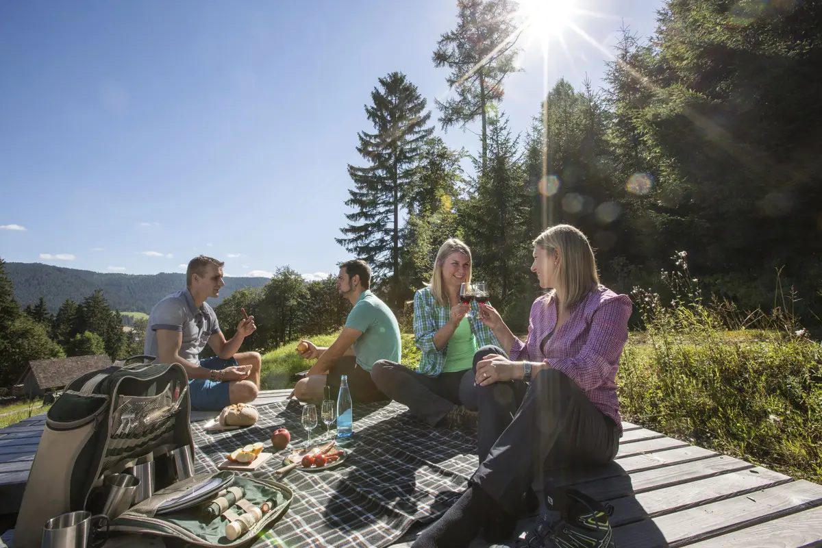 La combinaison des plaisirs de la nature et des papilles fait de la Forêt-Noire le "coin gourmet le plus beau d'Allemagne". Ceux qui remplissent à l'avance leur sac à dos de randonnée de spécialités régionales (ou le font remplir) peuvent déplier leur nappe à pique-nique sous les arbres fruitiers, dans les ruelles idylliques de la vieille ville ou avec vue sur les vignobles et la mer de forêts.