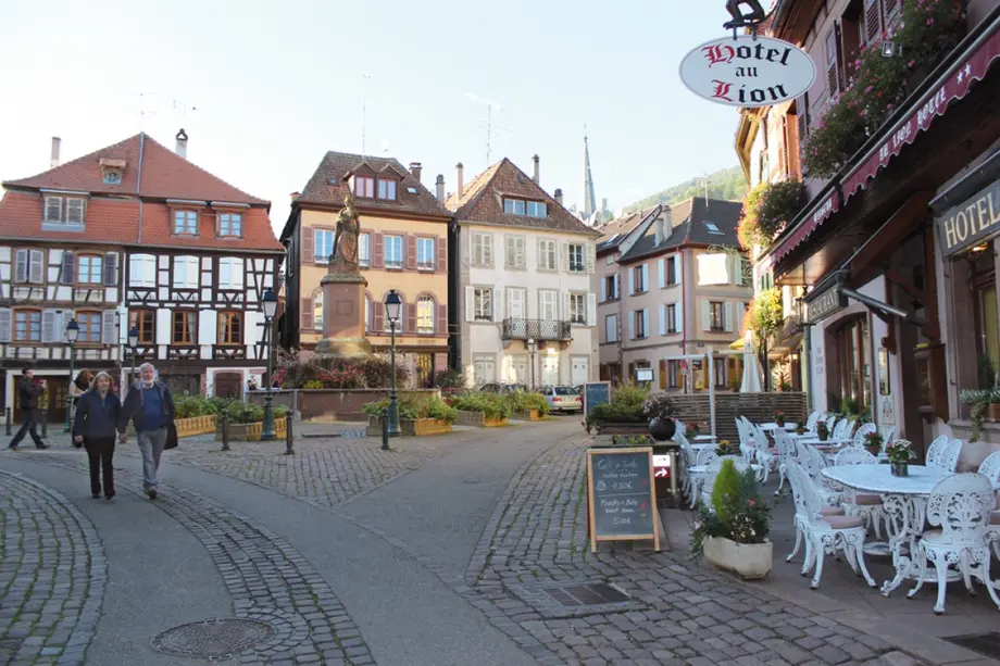 De retour en ville, on pourra profiter des nombreuses places et cafés, comme ici place de la Sinne