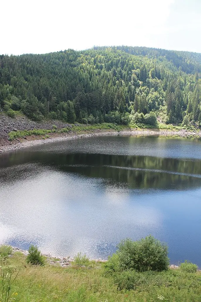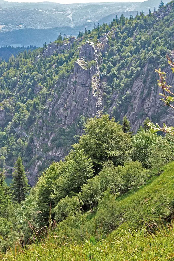 D’où que l’on vienne, la montée en vaut la peine. Entre le pic du Reif et le Taubenklangfelsen, à 1299m exactement, on peut jouir d’une vue plongeante sur le lac du Forlet ou lac des Truites. Il s’agit du plus élevé des lacs des Vosges, qui culmine à 1061 mètres et qui occupe un ancien cirque glaciaire. Des forêts de sapin, des parois rocheuses abruptes, la chaîne des ballons dans le fond : tout y est !
