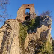 Au bout du chemin de crête, on peut admirer le rocher Hans, site d’escalade renommé, coiffé de la statue de la vierge. On peut aussi profiter d’une fontaine pour se rafraîchir et d’une table de pique-nique pour manger.