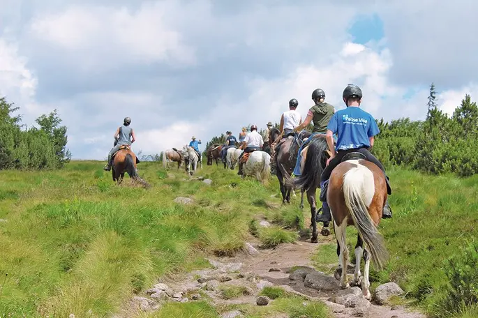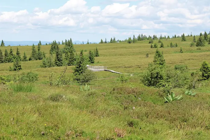 Pour rejoindre les Hautes Chaumes, suivre le rectangle rouge. On traverse un petit bout de forêt avant de déboucher sur une immense étendue, presque nue, tapissée d’herbes hautes et parsemée de quelques hêtres et arbustes. Au-delà de 1200 mètres d’altitude, peu de végétaux résistent aux conditions climatiques : froid, vend, humidité, neige... En été, tous les moyens sont bons pour le découvrir : à pied, à VTT ou à cheval.