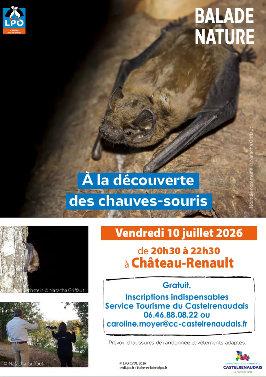 📣 Venez découvrir l’envol des chauves-souris le vendredi 10 juillet, de 20 h 30 à 22 h 30, à Château-Renault.