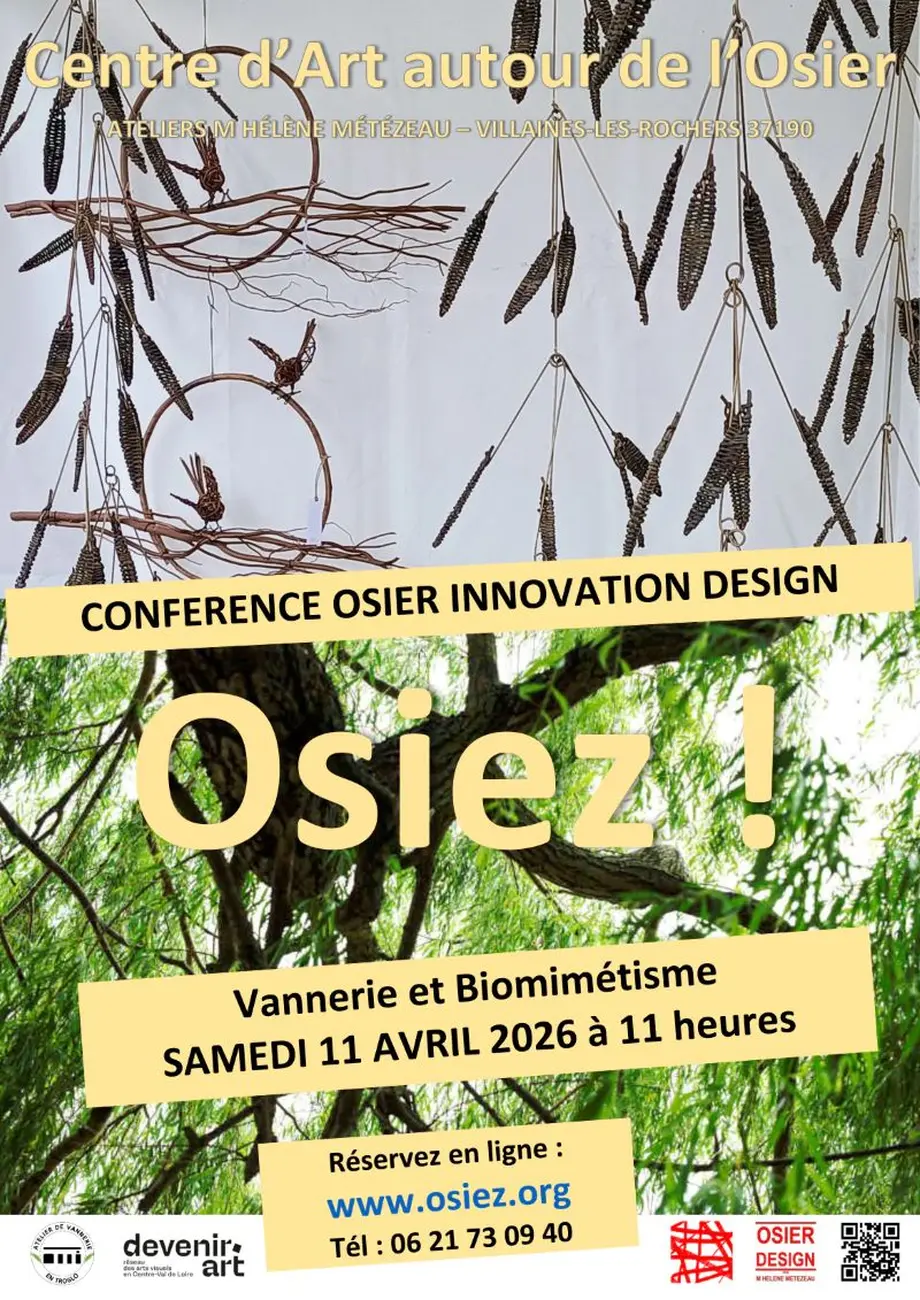 Le Centre d’Art autour de l’Osier vous accueille à Villaines-les-Rochers pour une visite guidée présentant des applications innovantes de l’osier. Une rencontre avec l’artiste en résidence permanente, Mme Hélène Métézeau, designer en osier, peintre et éditrice de tissages d’écorces…
