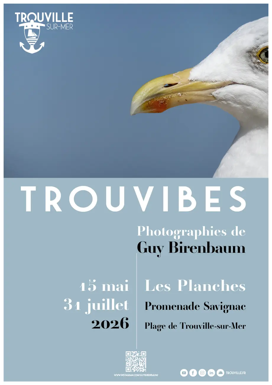 Installé depuis plus de vingt ans à Trouville-sur-Mer, Guy Birenbaum pose son regard sensible sur ce territoire qu’il considère comme un jardin vivant. À travers TROUVIBES, il capture l’inattendu du quotidien : les silhouettes qui se dessinent sur le sable, les instants suspendus, les lumières changeantes et les ciels toujours surprenants.