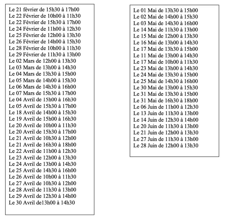 Dates et horaires :