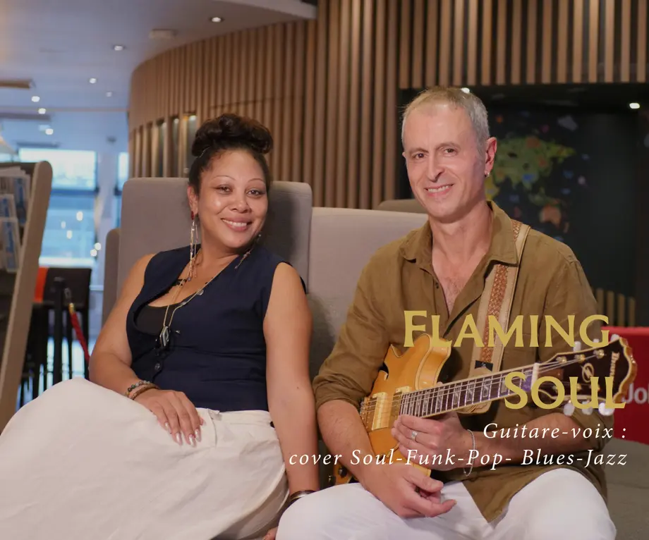 Flaming Soul, c’est un duo parisien où se rencontrent une guitare aux accents blues et une voix d’une intensité rare.