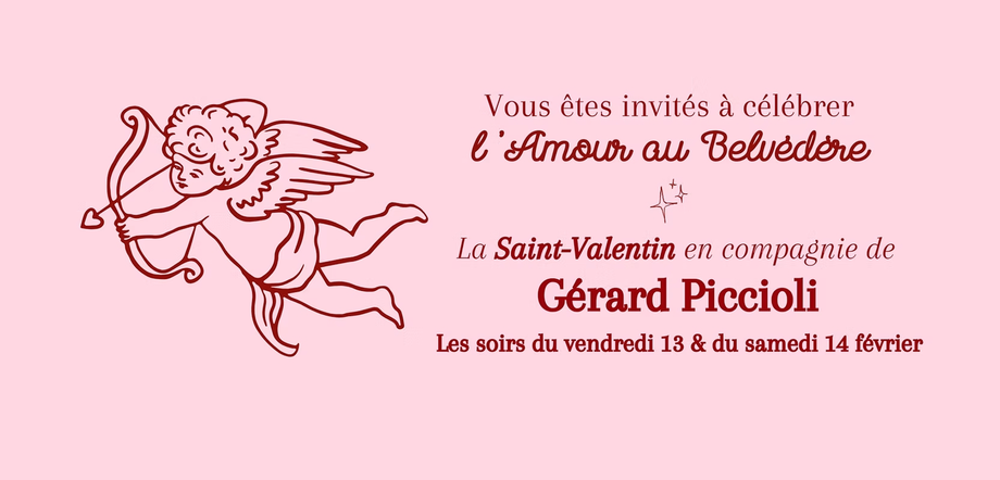 Les vendredi 13 et samedi 14 février, en soirée, profitez d’un dîner en musique avec Gérard Piccioli, qui viendra accompagner votre soirée des plus belles chansons d’amour.