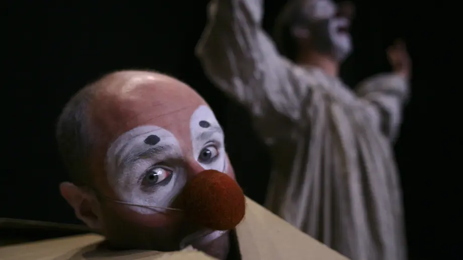 Sur scène, deux drôles de personnages : le nez rouge, la dégaine ne sont pas sans rappeler les clowns des pays de l’Est. Mais ce clin d’œil à la tradition se double d’un goût prononcé pour l’imaginaire, allié à un sens inné du comique et à une technique d’acrobate hors pair.