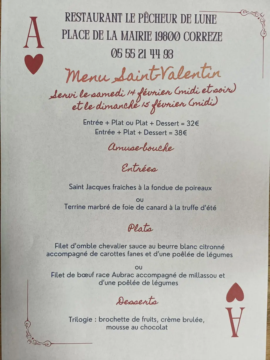 Restaurant Le Pêcheur de Lune : Repas Saint Valentin